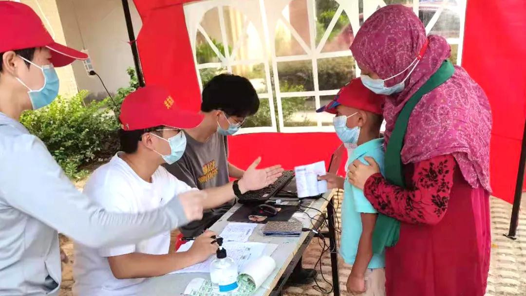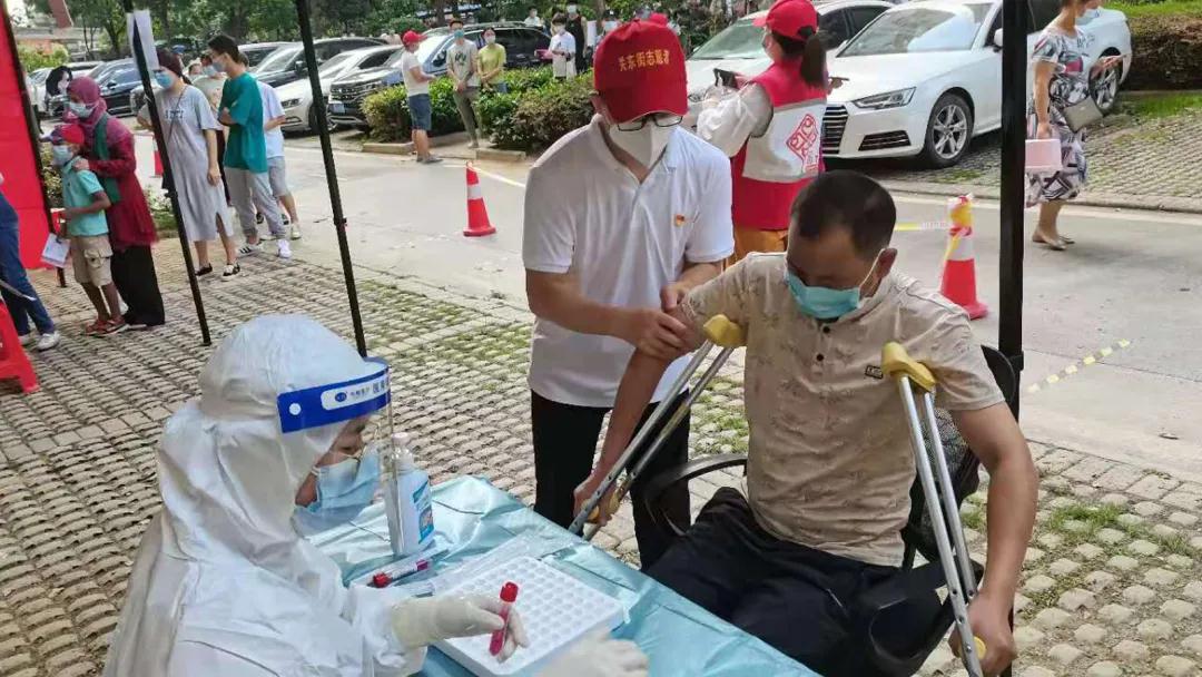“请大家准备好身份证,出示健康码,戴好口罩,有序排队,保持距离,不要拥挤。”8月6日,东湖高新集团党员工作队的成员们已深入一线,在祥和雅居小区、成园小区协助社区开展核酸采样工作。他们在烈日下连续工作,后背已被汗水浸透,一遍又一遍、严谨认真地重复着工作流程。
