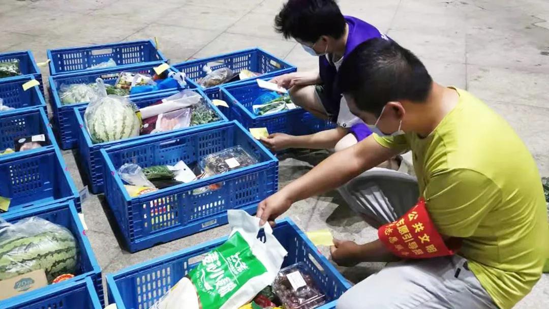 ▲ 环保二支部党员裴碧涛下沉观澜社区为居民发放生活物资
