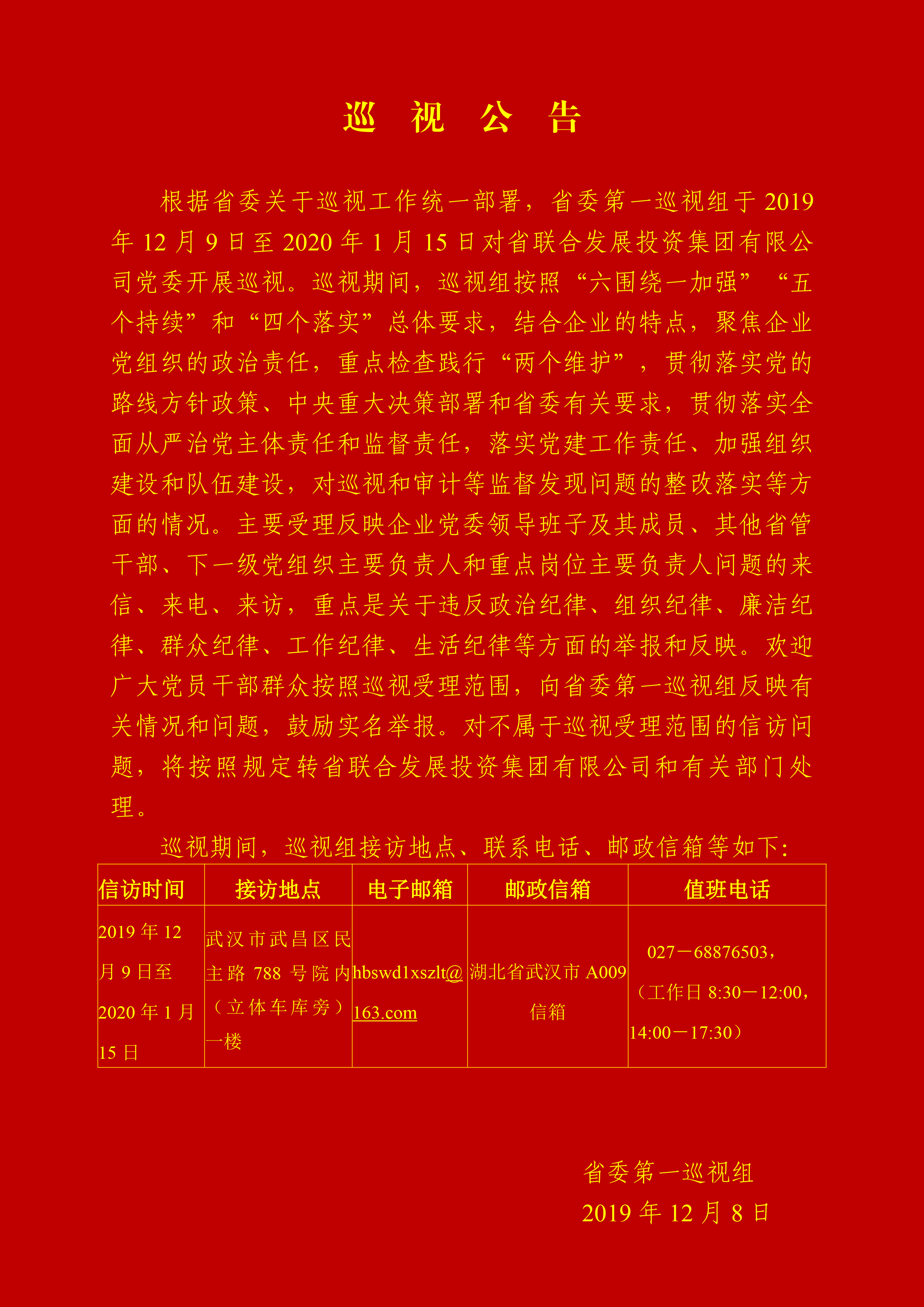 联投集团巡视公告