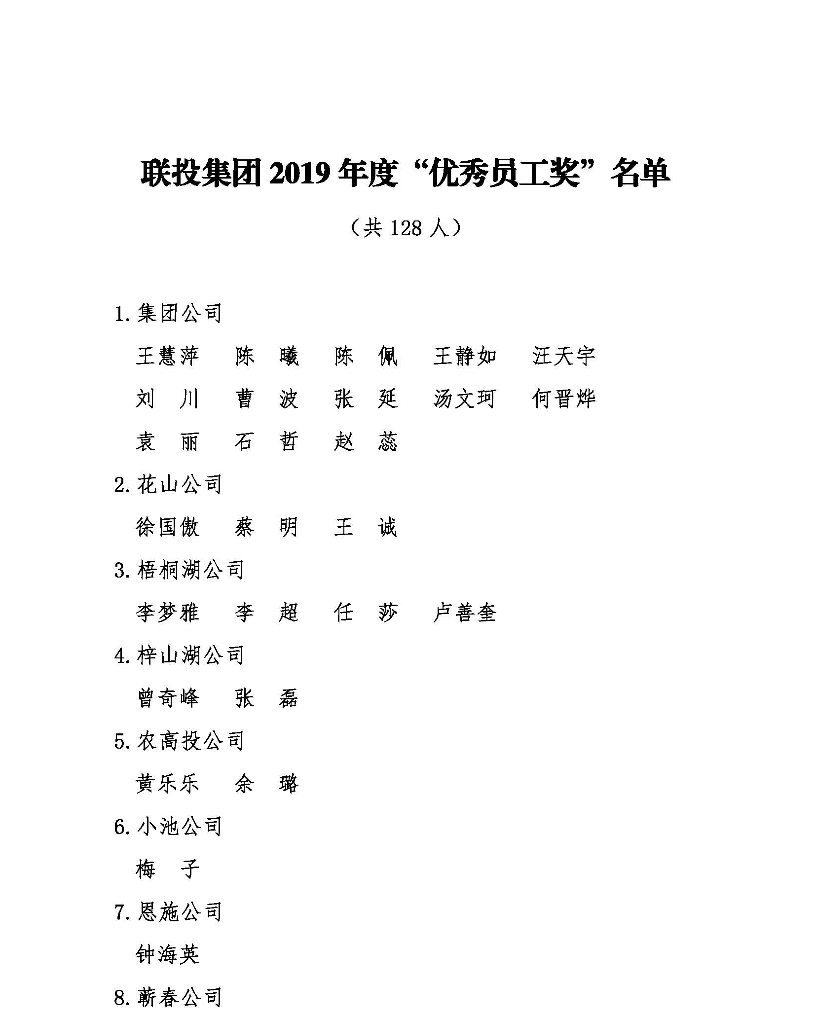 为树立企业先进典型,表彰在2019年度经营管理工作中做出突出贡献的先进集体和先进个人,根据《关于开展2019年度评优评先工作的通知》(鄂联投人〔2019〕200号)安排,本次评优评先工作经过提名申报、网络投票、现场投票环节,联投集团党委针对 “杰出经营管理团队奖”“联投年度人物奖”“优秀团队奖”“优秀经理奖”“优秀员工奖”“新人成长奖”已进行评审,现将评审通过获奖人员(名单附后)进行公示。